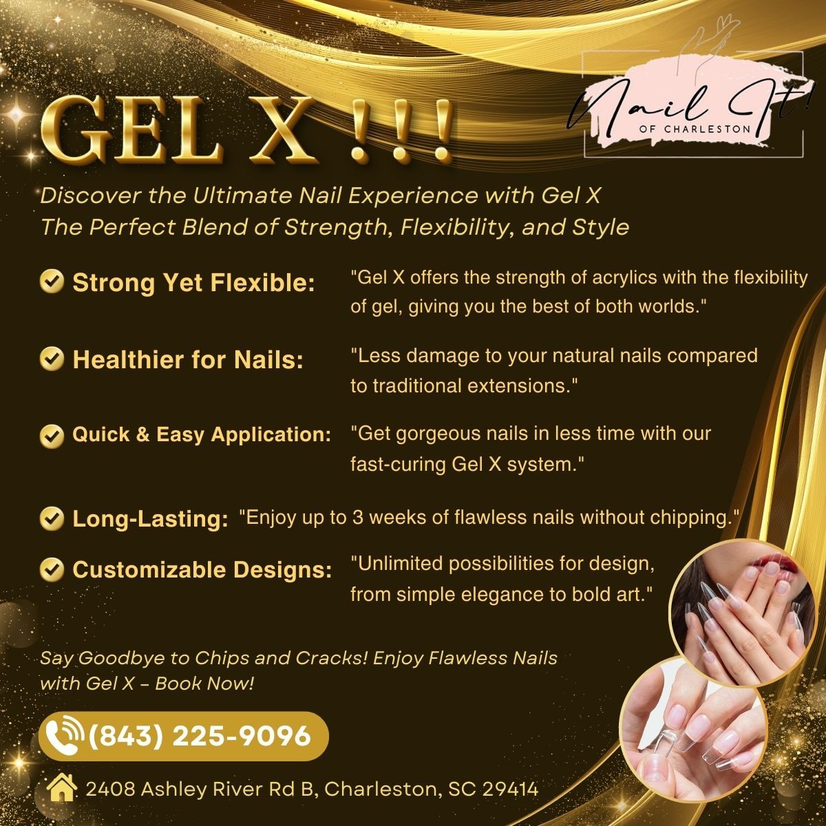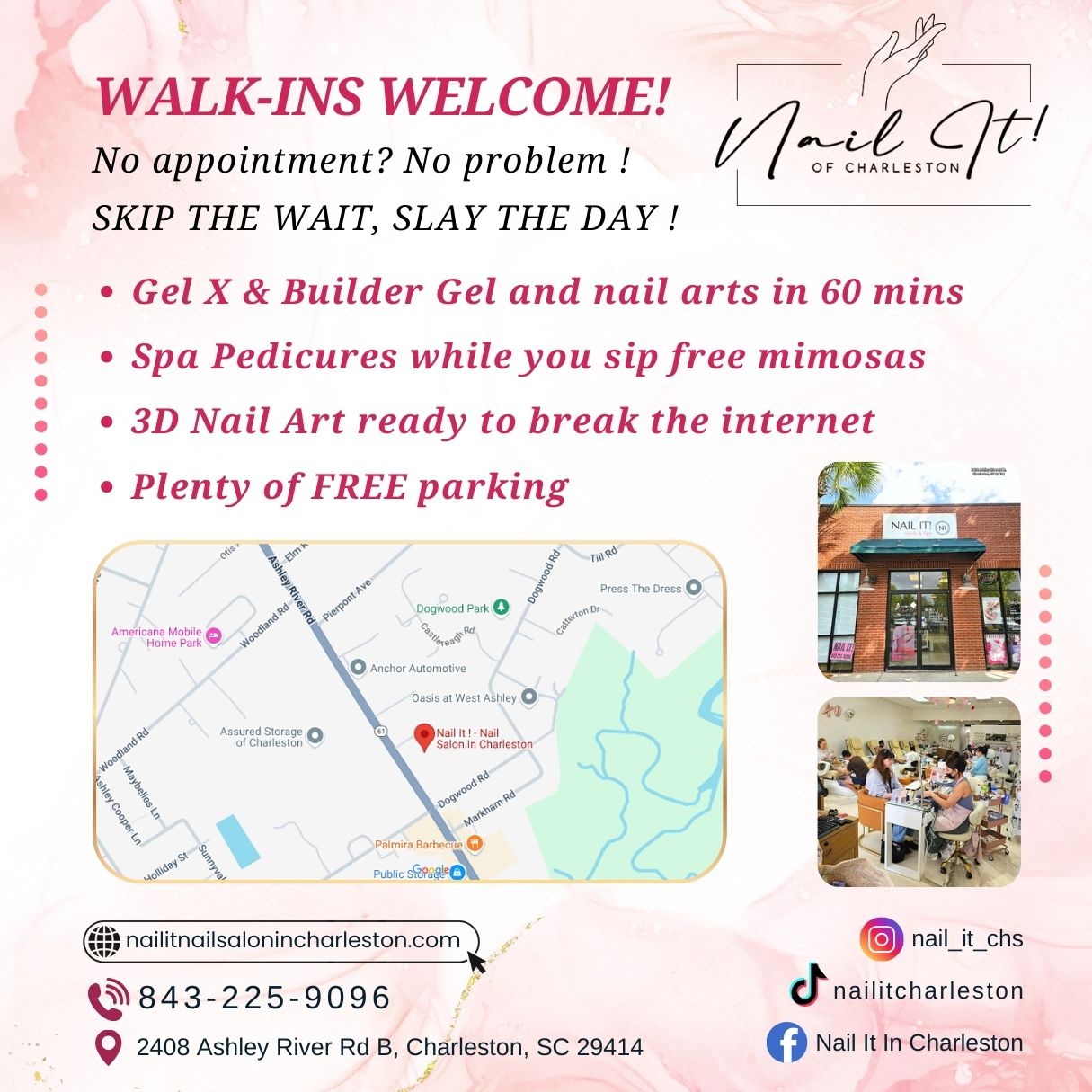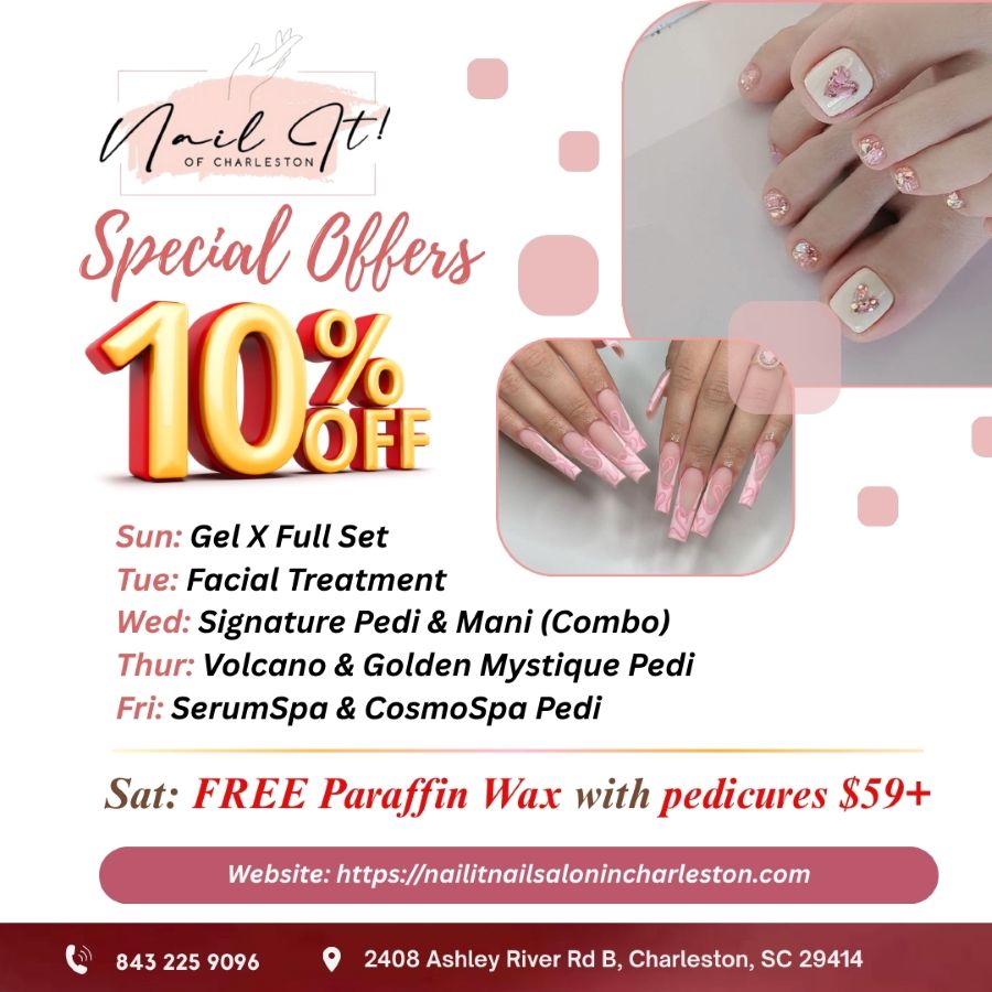 Located conveniently in Charleston, SC 29414, Nail It! In Charleston is the premiere destination for all your pampering needs.